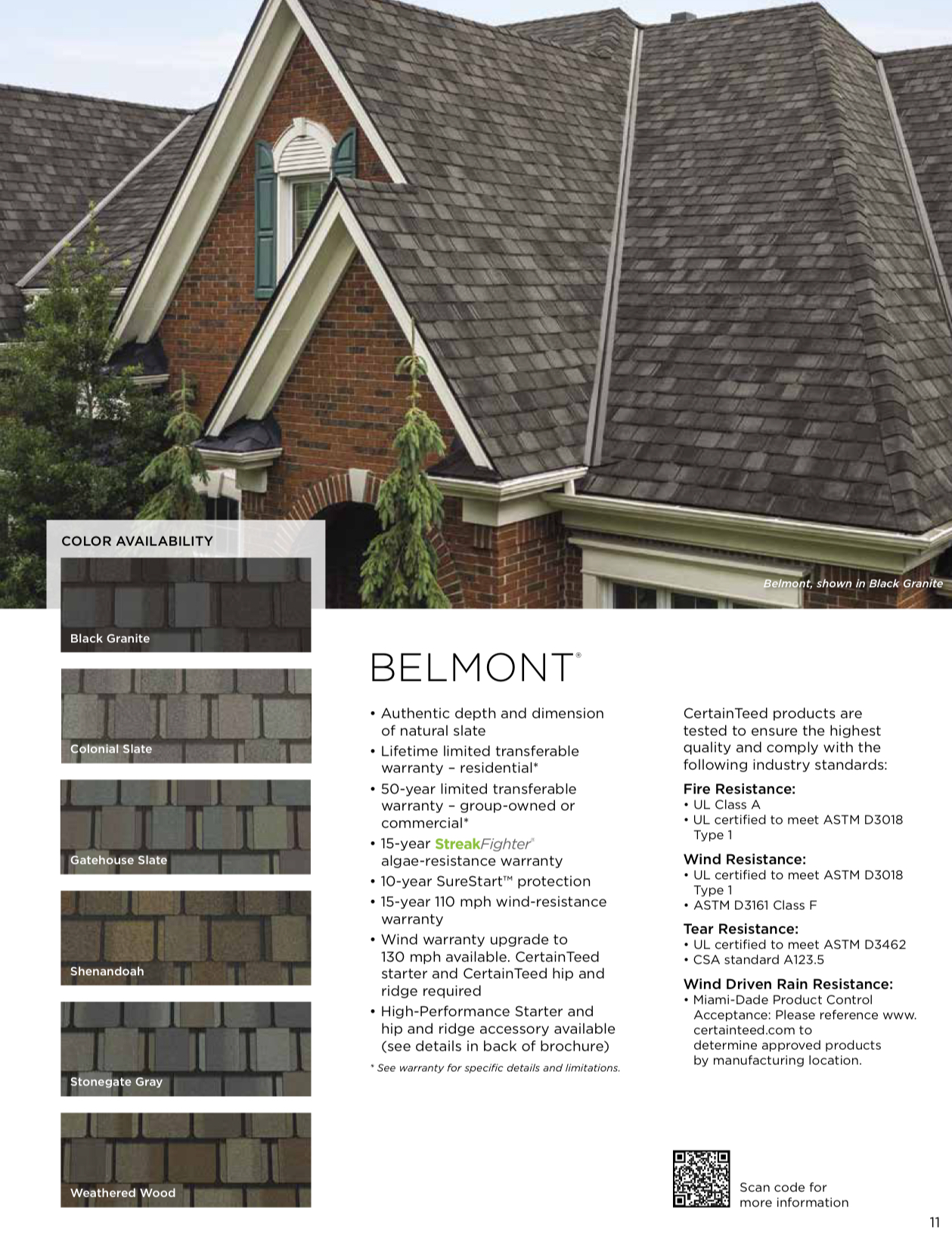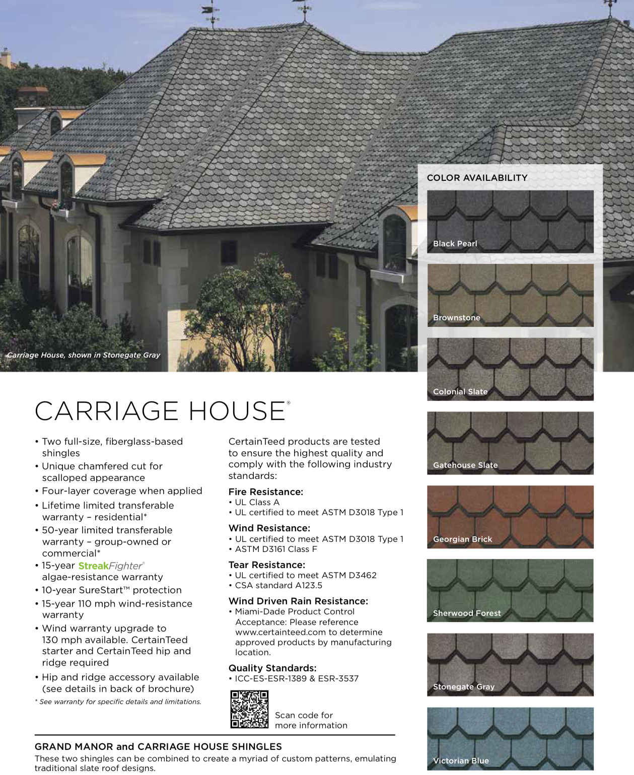 Beyond the Landmark family, CertainTeed's luxury-grade architectural options — such as Belmont®, Grand Manor®, and Carriage House® — are crafted to emulate the look of slate or hand-cut wood shakes while providing superior wind, algae, and impact resistance. These high-end shingles not only elevate curb appeal but also come with the brand's strongest warranties, making them a lasting investment in both beauty and protection.