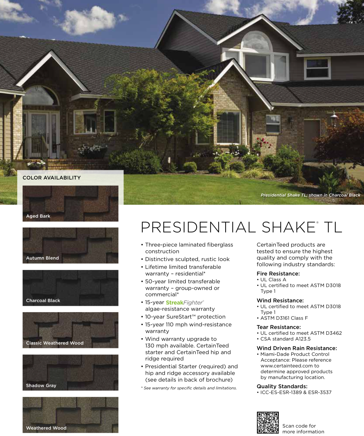 The Presidential line represents CertainTeed's top-tier luxury asphalt shingle offering, designed to replicate the appearance of hand-split cedar shake roofing while delivering the durability and protection of advanced asphalt laminated construction, resulting in maximum visual impact and maximum performance.