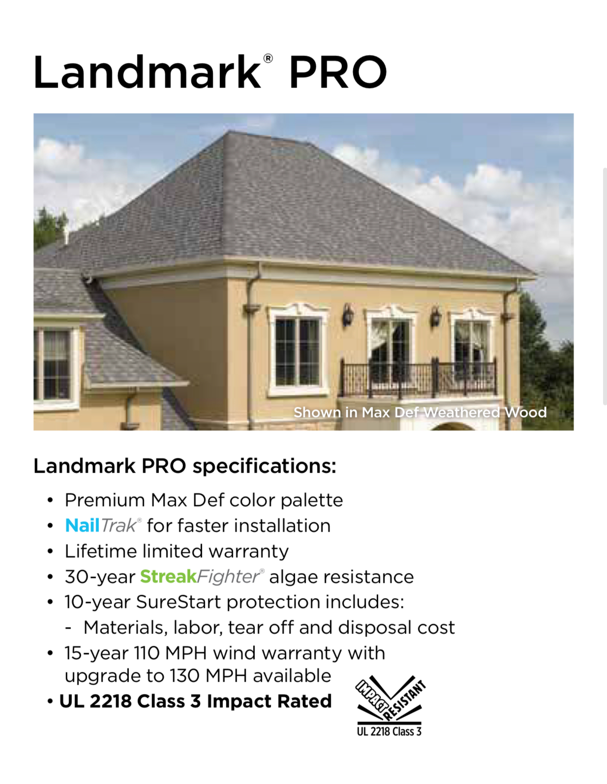 Want to see how Landmark Pro shingles look on your home? Certainteed’s ColorView program allows you to upload a digital image of your home and virtually "try-on" different shingle styles and colors. It’s fast, easy and free to use.