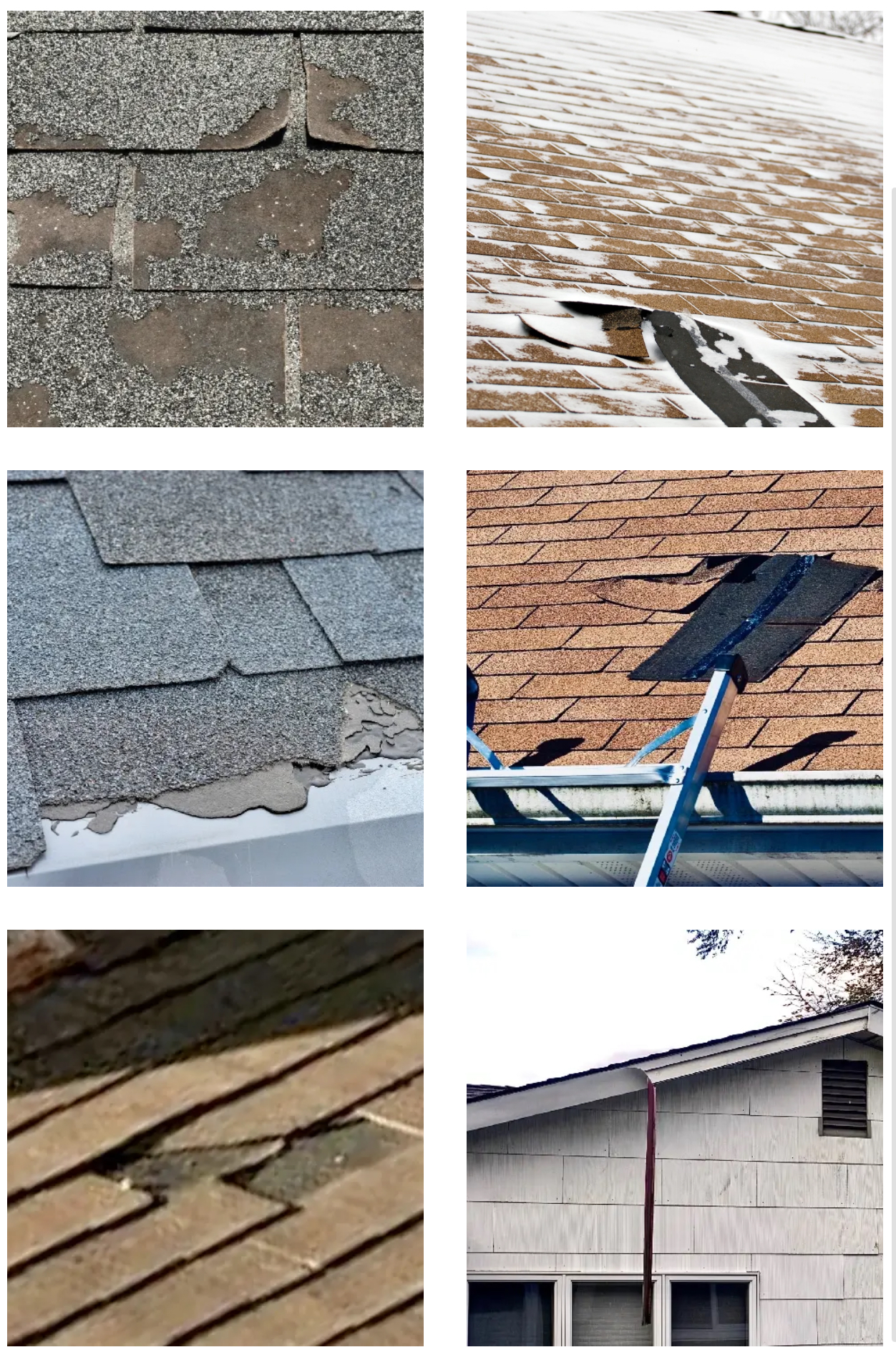 (The very last image is an example of fascia damage. Fascia runs along the lower-edge of the roof & assists in protecting the interior from things like water damage). Like shingles, fascia damage should be addressed soon as noticed.
