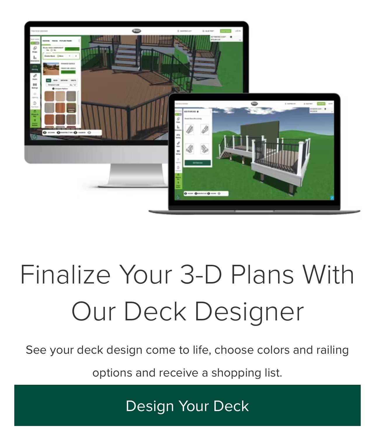 From modern composite decks to traditional wood finishes, stamped-concrete patios to cedar or vinyl gazebos, we offer a wide range of durable, weather-resistant materials and customizable design options to match your home's aesthetic and lifestyle needs.