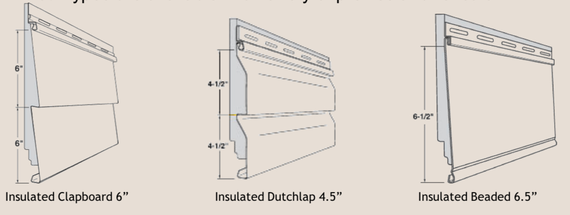 Note: while the thicknesses above are fairly standard sizes, exact measurements may vary by product and manufacturer (for example, some brands may offer vinyl siding with a thickness of 0.042" or 0.044")