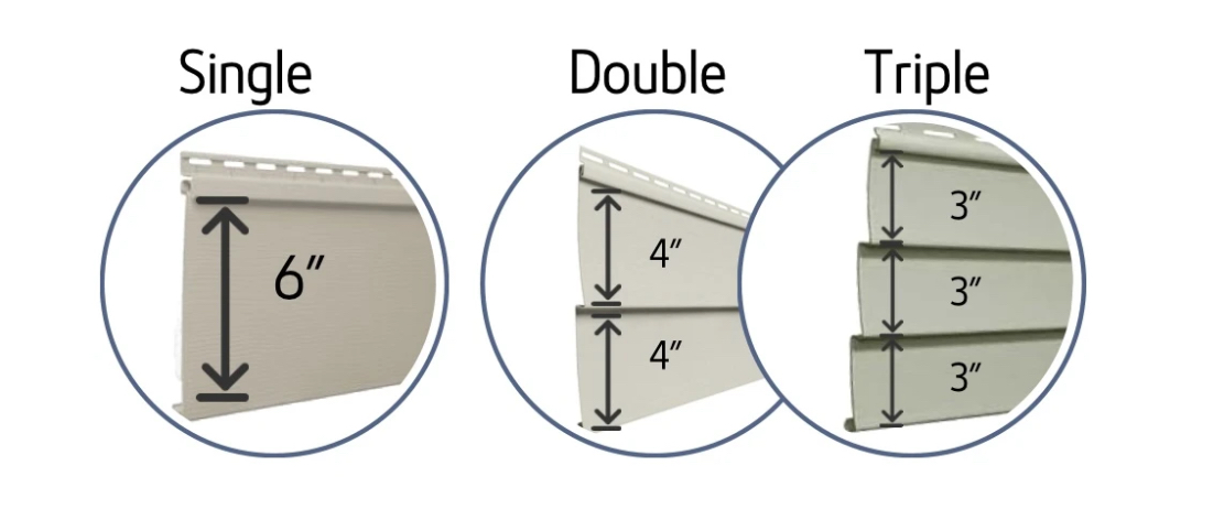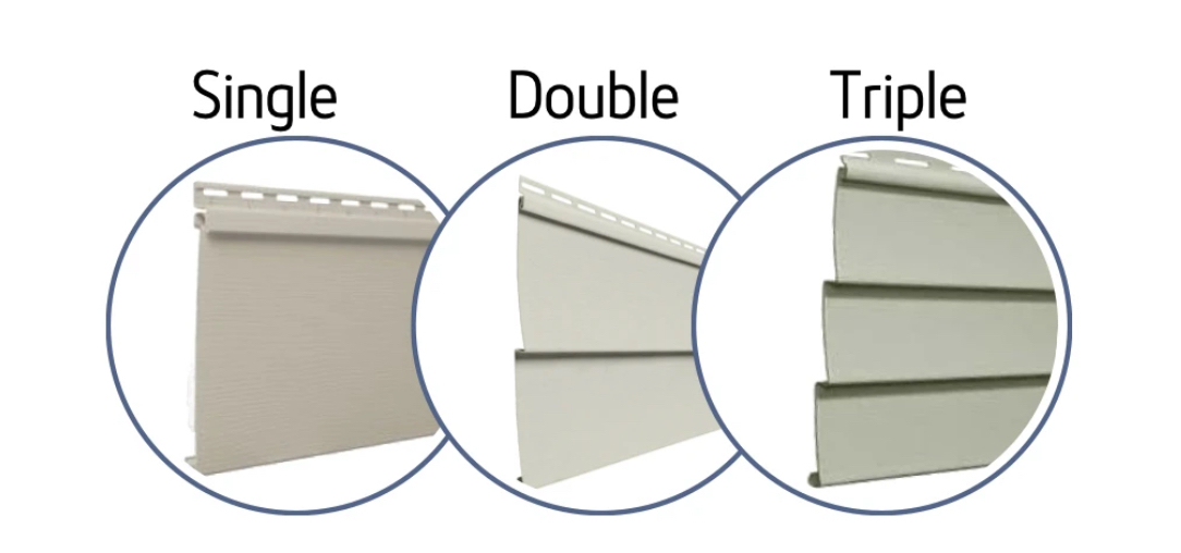 Most horizontal vinyl siding (such as clapboard and dutch-lap) is produced in single-, double- and triple-course siding panels: